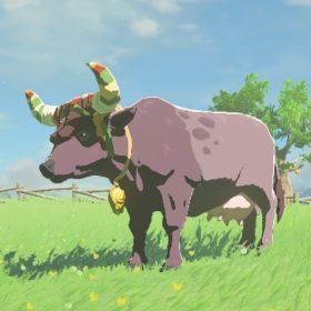 Originating in Hateno Village, these cows are kept as livestock primarily for their milk. Their horns are smaller than a water buffalo's, and they're much more doctile and therefore easier to raise. Their horns are docorated with bright colors when taken out to pasture.